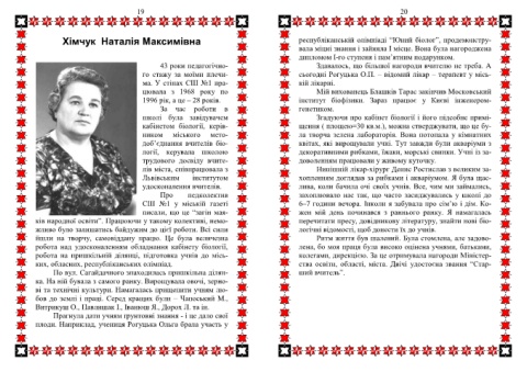 ків народної освіти”. Працюючи у такому колективі, немо- перечитати пресу, довідникову літературу, знайти нові біо-