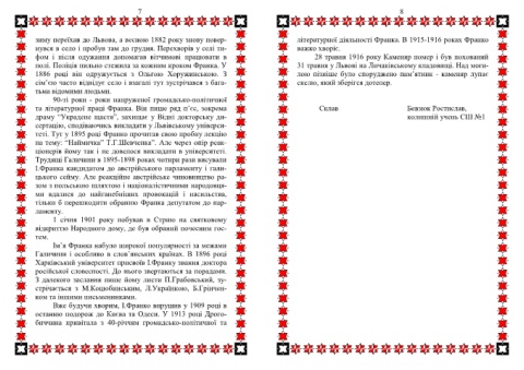 та літературної праці Франка. Він пише ряд п’єс, зокрема Склав Бевзюк Ростислав,