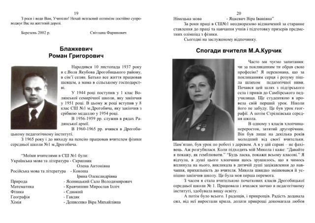 Блажкевич Спогади вчителя М.А.Курчик