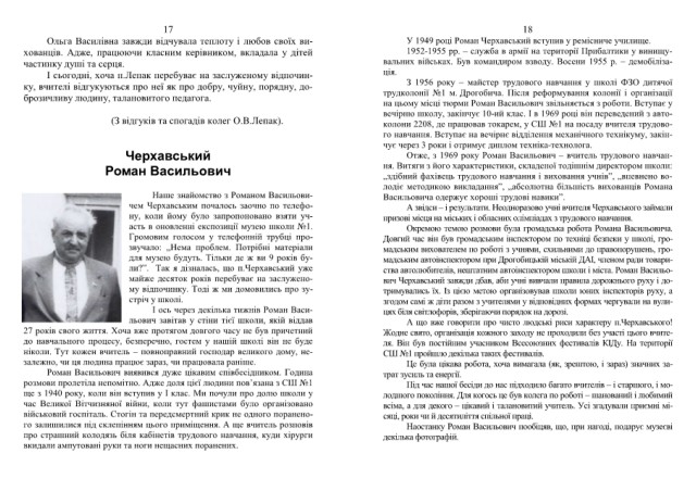 брозичливу людину, талановитого педагога. трудколонії №1 м. Дрогобича. Після реформування колонії і організації