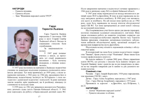З 1959 року по 1961 рік працювала вихователем Ржищівсь- НАГОРОДИ: